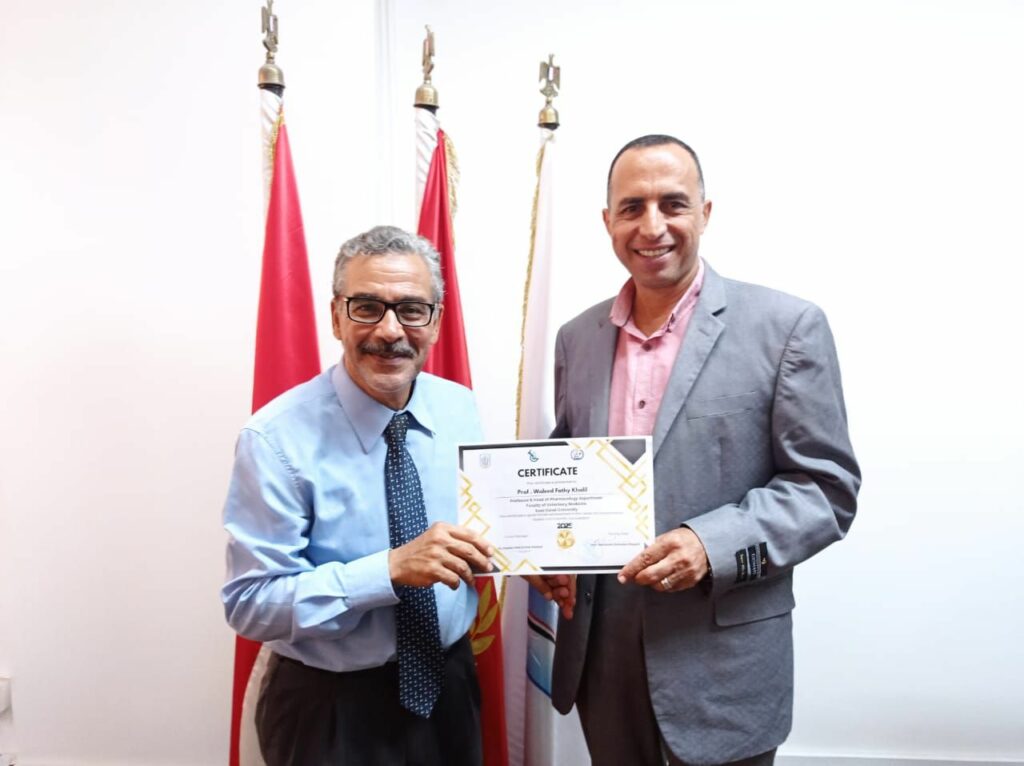 أ.د محمد رمضان عميد الكلية يستقبل الأستاذ الدكتور وليد فتحي خليل استاذ ورئيس قسم الفارماكولوجي بكلية الطب البيطرى جامعة قناة السويس الحاصل على جائزة الطبيب المثالي عن محافظة بورسعيد والذى حاضر بالدورة التدريبية بمركز الدراسات البيئية والإستشارات العلمية تحت عنوان ” طرق الحقن المختلفة وتحديد الجرعات المناسبة في حيوانات التجارب” صباح اليوم بقاعة المناقشات بكلية العلوم