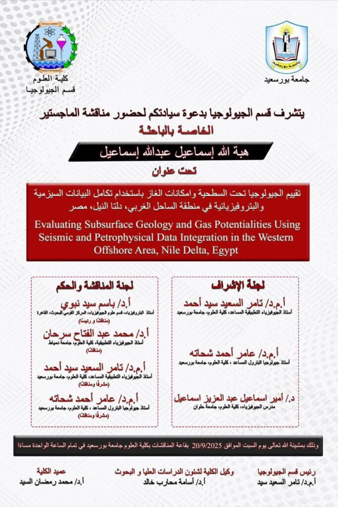 قسم الجيولوجيا يناقش رسالة الماجستير للباحثة هبة الله اسماعيل