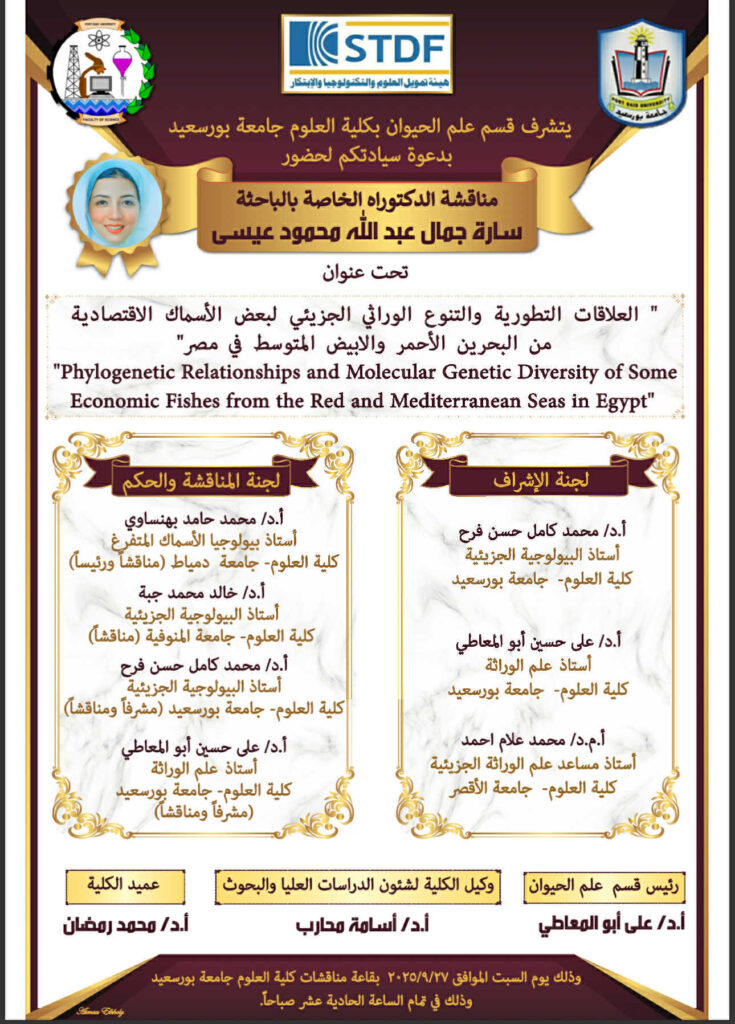 قسم علم الحيوان يناقش رسالة الدكتوراه للباحثة سارة جمال عيسى