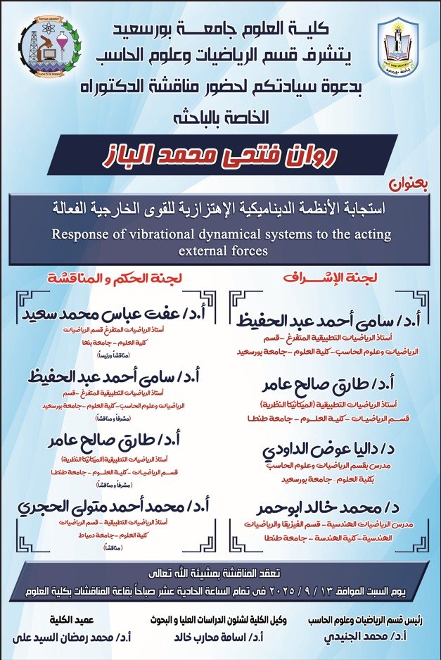 قسم الكيمياء يناقش رسالة الدكتوراه للباحثة رنا حمودة محمد حمودة – الكيمياء الفيزيائية