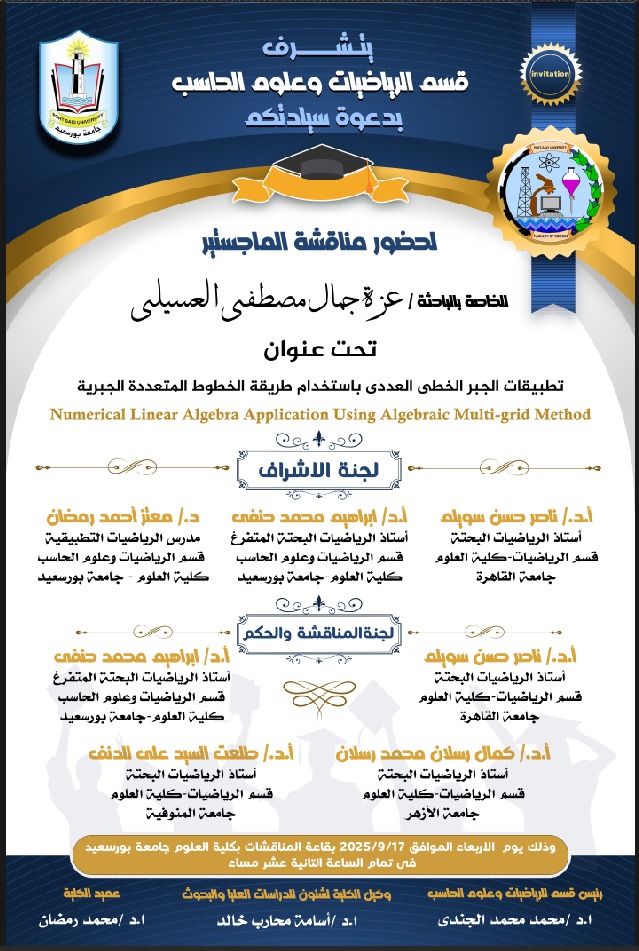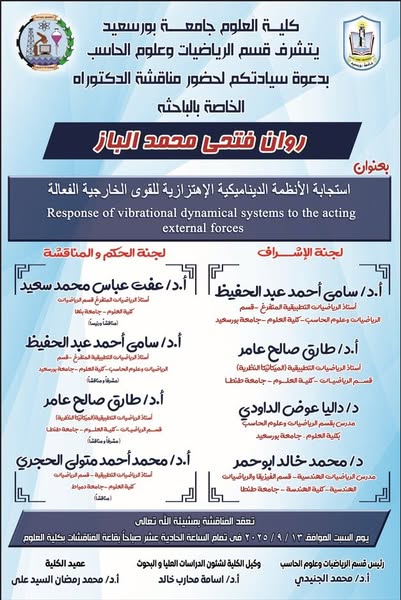 الاستاذ الدكتور محمد رمضان السيد عميد الكلية يستقبل الاستاذ الدكتور وائل عبد القادر عوض عميد كلية الحاسبات والذكاء الاصطناعى جامعة دمياط رئيس لجنة الحكم والمناقشة لرسالة الماجستير الخاصة بالباحثة تسنيم نبيل سالم شندى